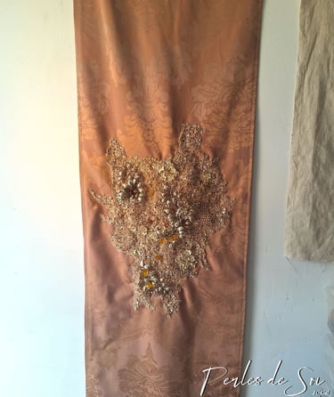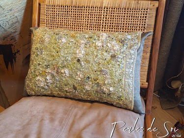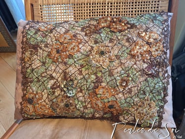 Coussins, tableaux, ou encore passages de tables sont autant d'autres essais créatifs et commandes d'articles mis en valeur par les superbes broderies ornementales de Perles de Soi